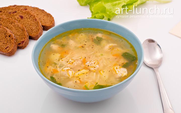 Куриный суп с вермишелью и картошкойКуриный суп с вермишелью и картошкой – это частое блюдо во многих семьях. Но если вы еще ни разу не пробовали его готовить или ваша кулинарная практика началась совсем недавно, можете смело воспользоваться этим рецептом.Секреты приготовленияЕсли рассматривать ингредиенты для супа, то все легко и просто. Будем использовать курицу для отваривания бульона, а остальном понадобятся только овощи и немного вермишели, которую все обожают. Многие детки просто обожают вылавливать вермишель ложкой, так что вы накормите и взрослых, и детишек.Конечно, супы лучше всего подойдут для обеденного времени. Питательный горячий суп всегда будет воспринят на ура, вы будете только ложки всем подавать, а тарелки после обеда будут пустыми, потому…