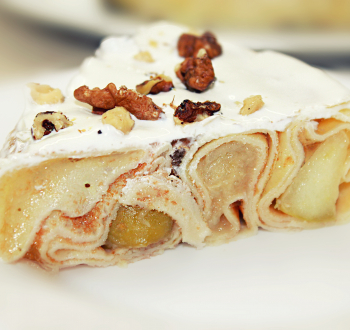Как приготовить Блинный торт Главная → Домашняя ЕДА → Блинный торт – Видео-рецепт Автор рецепта: AlekseyOlkin После приготовления вы получите: 4 порции Время приготовления: 1 час 15 минут Вкуснейший блинный торт из нежных бананово-яблочных блинов с воздушным творожным кремом! Ингредиенты Мука: 300 граммов, (ДЛЯ БЛИНОВ) Молоко: 400 миллилитров, (ДЛЯ БЛИНОВ) Яблоки: 1 штука, (зеленое) (ДЛЯ БЛИНОВ) Бананы: 1 штука, (ДЛЯ БЛИНОВ) Масло растительное: 2 столовые ложки, (ДЛЯ БЛИНОВ) Сахар: 1 столовая ложка, (ДЛЯ БЛИНОВ) Сода пищевая: 1/2 чайная ложка, (ДЛЯ БЛИНОВ) Яйца куриные: 1 штука, (ДЛЯ БЛИНОВ) Творог: 400 граммов, (ДЛЯ КРЕМА) Сметана: 100 граммов, (ДЛЯ КРЕМА) Сахар: 3 столовые ложки, (ДЛЯ КРЕМА) Сироп: небольшое количество, (любой, для…