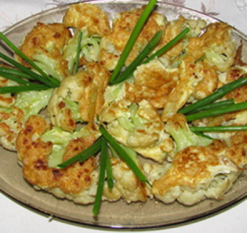 Цветная капуста, жаренная в яйце Цветную капусту вымыть, дать стечь воде и разделить на соцветия (мелкие кочешки). Кочешки отварить в подсоленной воде 3-5 минут и откинуть на дуршлаг. В отдельной миске разболтать вилкой яйца с солью (можно добавить приправу, типа “Магги”). Каждое соцветие окунуть во взбитые яйца и обжарить в разогретом масле до золотистого цвета.СоветМожно капусту обмакнуть в яйцо, а затем в панировочные сухари и обжарить. Приятного Вам аппетита! Поделись рецептом с друзьями! gotovim-doma.ruЦветная капуста с яйцом – вкусный рецепт с пошаговым фото 1 Цветную капусту разделить на соцветия, крупные порезать. 2 Бланшировать капусту в кипящей воде 3-4 минуты. Откинуть на дуршлаг. 3 Масло сливочное растопить 4 Яйца взбить вилкой…