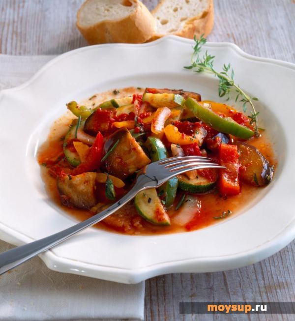 рецепт с фото. Как приготовить суп рататуй (деревенский)? Овощной суп рататуй изобрели французы. Его еще называют деревенским супом, так как состоит он из простых и доступных ингредиентов. Вскоре рататуй стал популярным во всем мире благодаря яркому овощному вкусу и низкой калорийности. Существуют вариации супа с добавлением макарон и мяса, но классический суп рататуй готовится только из овощей. Ингредиенты Продукт Количество Перец болгарский 3 шт. Помидоры сладкие 3 шт. Корень петрушки 4 шт. Баклажан 1 шт. Кабачки 2 шт. Лук белый салатный 2 шт. Картофель 2 шт. Морковь 3 шт. Чеснок свежий 5 зубчиков Зелень петрушки 3 веточки Перец душистый 3 шт. Масло оливковое 30 мл Масло сливочное 40 г Соль,…