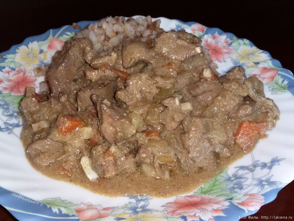 Печень куриная тушеная с луком и морковью в сметане рецепт с фото пошагово и видео